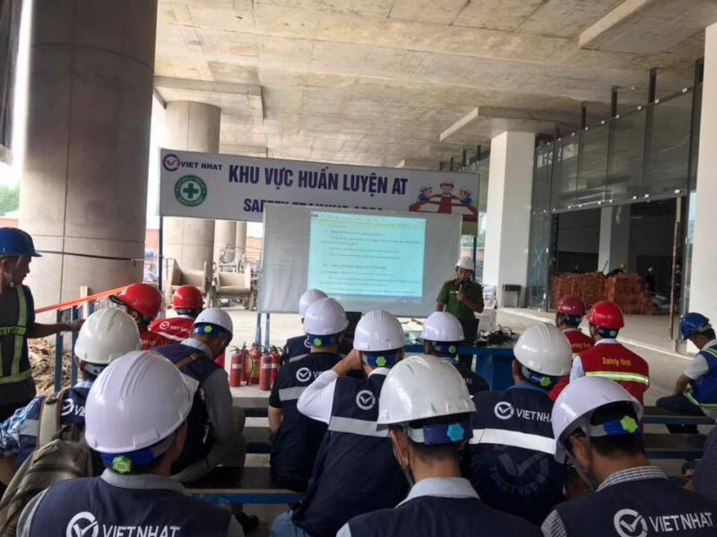 Nằm trong chương trình huấn luyện – đào tạo thường niên của hệ thống quản lý OHS, Ban an toàn công ty Việt Nhật đã tiếp tục tổ chức các buổi tập huấn định kỳ về Phòng cháy chữa cháy (PCCC) và cứu nạn cứu hộ, có sự tham gia hướng dẫn của cơ quan công an PCCC tại các Dự án công ty đang thi công.